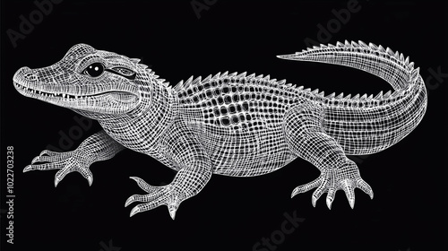 © watz, Naklejka premium Wireframe illustration of a crocodile against a black background.