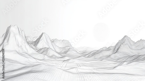 © AlfaSmart, Obraz premium Wireframe landscape with mountains and valleys in minimalist style