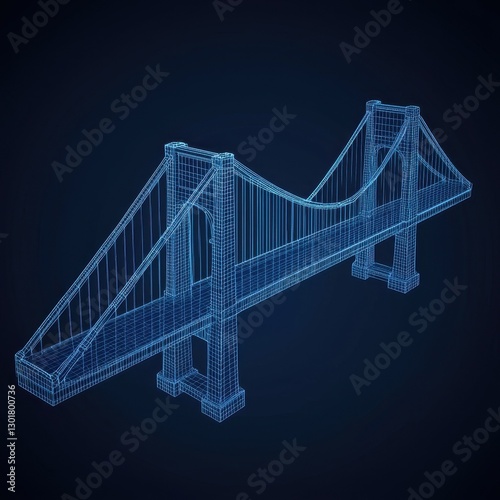Obraz premium Wireframe Model of Iconic Suspension Bridge in 3D Visualization