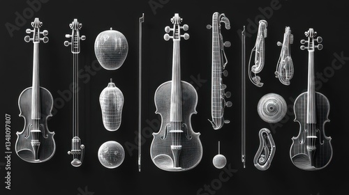 Naklejka premium Wireframe Violins: A 3D Model of String Instruments