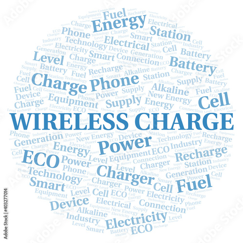 Fototapeta premium Wireless Charge typography word cloud create with the text only.