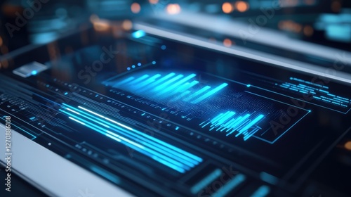 Obraz premium Wireless keyboard with a futuristic holographic display, placed on a white...