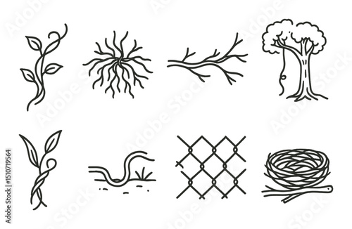 © Іван Ніколов, Fototapeta premium Wires and nature linear icon set. simple and minimalist nature design elements