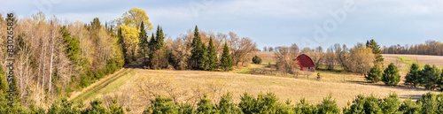 Fototapeta premium Wisconsin farmland with red barn in April