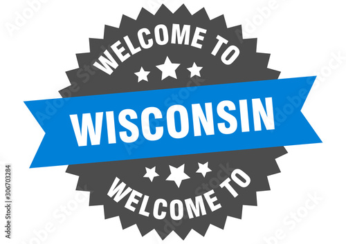 Fototapeta premium Wisconsin sign. welcome to Wisconsin blue sticker