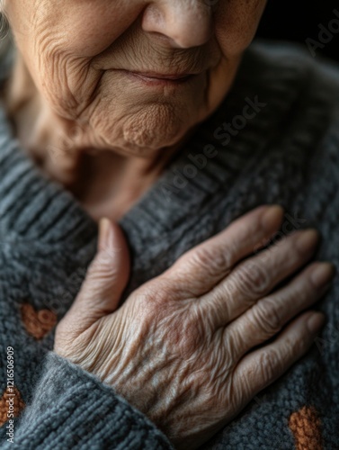 Fototapeta premium Wisdom of Age - Elderly Hands on Chest
