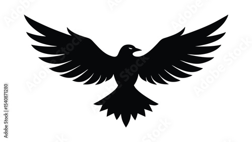 © Sabia, Obraz premium Wise eagle soaring with fully spread wings in flight over mountains silhouette