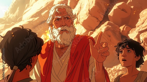 Fototapeta premium Wise Elder Teaching Children in Desert Scene
