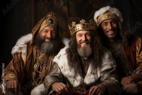 Naklejka premium Wise Men Embark on a Sacred Journey to Celebrate the Birth of Baby Jesus in...
