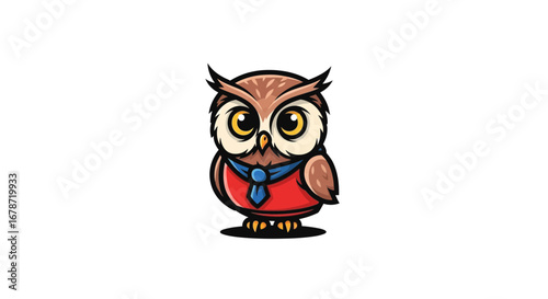 © Mobiles, Obraz premium Wise owl mascot bold minimalist cartoon on white background.