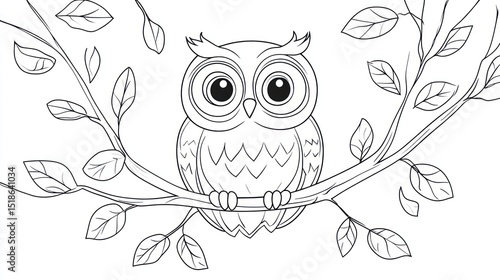 © sarju, Obraz premium Wise owl perched on a leafy tree branch, white background