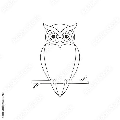 Fototapeta premium Wise owl perched on branch simple line drawing