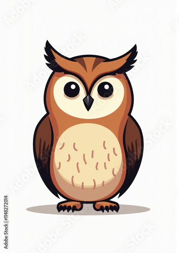 © Mikhail, Fototapeta premium Wise Owl with Sharp Eyes, Wildlife Illustration on White Background