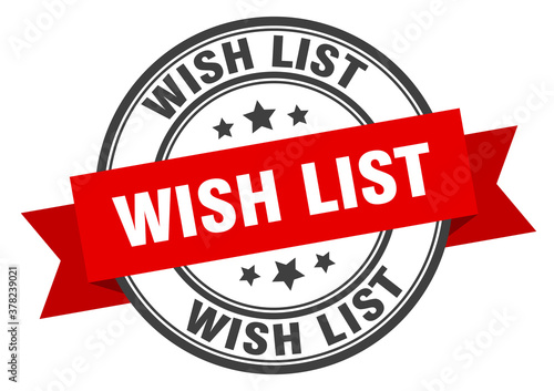 © Aquir, Obraz premium wish list label sign. round stamp. band. ribbon