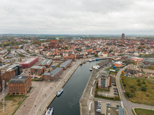 Fototapeta premium Wismar Hansestadt an der Ostseeküste, Luftaufnahme, von oben aus der luft,...
