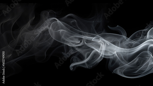 © Assyifa Sisters, Obraz premium Wisps of White Smoke Flowing Gracefully on Black Background