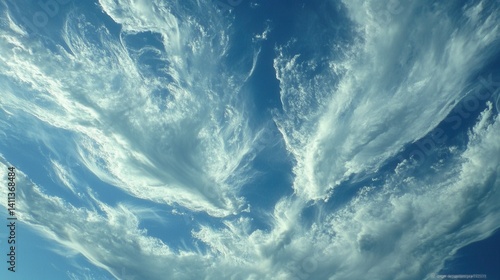 © Art Jabz, Obraz premium Wispy clouds against a vibrant blue sky