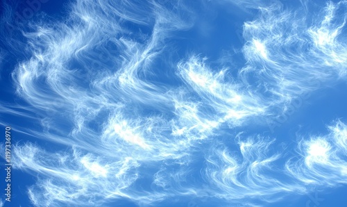 Obraz premium Wispy white clouds streak across a vibrant blue sky, ideal for nature...