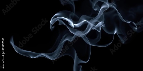 © Watcharong, Fototapeta premium Wispy white smoke threads rising against a dark background, texture, mystery