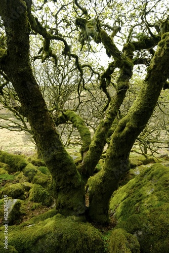 Fototapeta premium Wistman's Wood, Dartmoor National Park, Old Oaks, Devon, United Kingdom, Europe