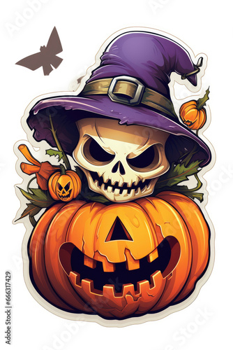 © PHB Stock, Fototapeta premium Witch and pumpking halloween elements sticker isolated on a white background