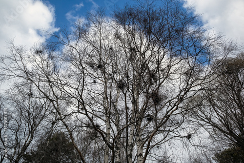 Fototapeta premium Witch's brooms on birch tree branches, Finland