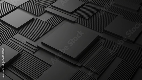 Obraz premium With a black futuristic form and simple black background, the design is clean and minimal. 3D rendering.