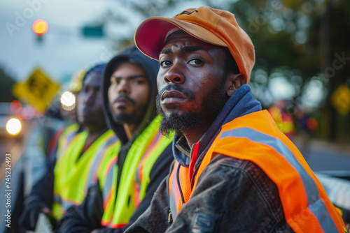 Obraz premium With determination etched on their faces, protesters donning traffic vests...