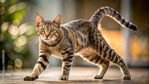Naklejka premium With fluid ease, the agile feline curls into a compact ball, revealing its...