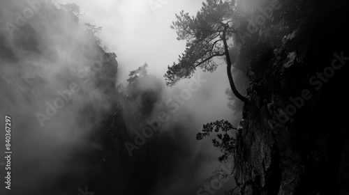 © Justlight, Fototapeta premium Within the dense fog shadowy forms glided effortlessly through the canyon their movements mysterious and haunting