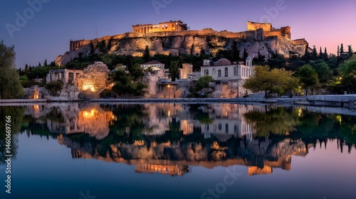 Fototapeta premium Witness Ancient Grandeur at Acropolis at Twilight Reflecting Golden Light on...