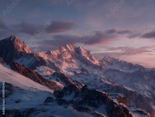 Obraz premium Witness Breathtaking Sunset Mountain Range Glowing in Wide-Angle Shot...