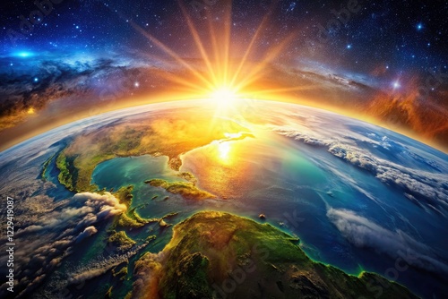 Fototapeta premium Witness Earth's stunning sunrise from space; a breathtaking cosmic dawn unfolds.