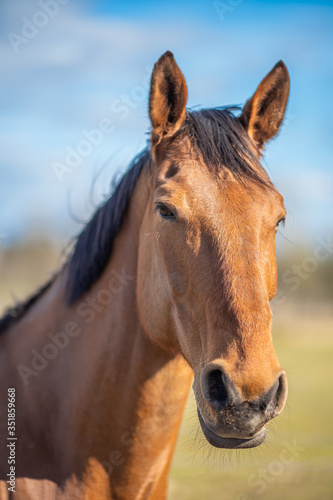 © bzzup, Fototapeta premium Wizerunek młodego konia na polu