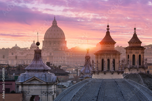 Naklejka premium Włochy, panoramę Rzymu o zachodzie słońca z katedrą św