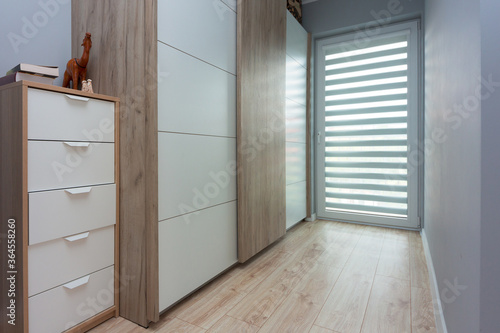 © Patryk Kosmider, Fototapeta premium Wnętrze nowoczesnego domu z drewnianą szafą