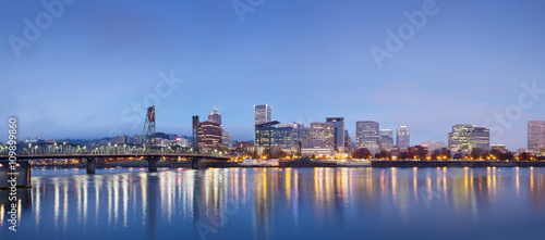 © zhu difeng, Naklejka premium woda, pejzaż miejski i linia horyzontu Portland w niebieskim niebie