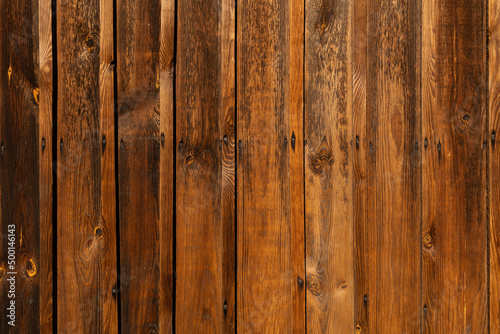 Fototapeta premium Wodden brown planks in various shades of colours, aged wodden wall of the cottage house surface making a good background material
