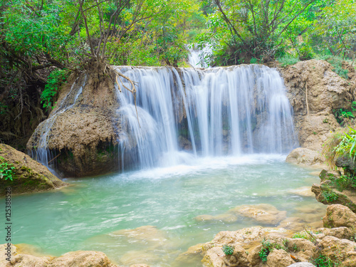Fototapeta premium Wodospad w głębokim lesie w Parku Narodowym Wodospadu Namtok thi Lo Su,...