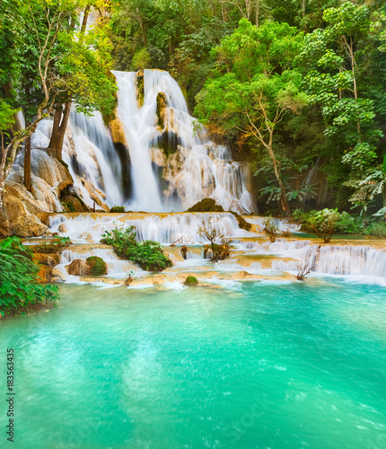 Fototapeta premium Wodospady Tat Kuang Si. Piękny krajobraz. Laos.
