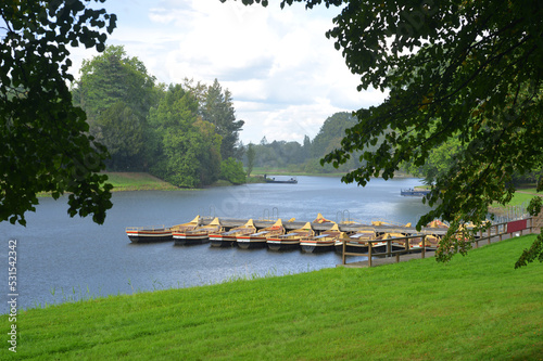Naklejka premium Woerlitz, Park and Garden Landscape with boats and vintage ferrys under a...