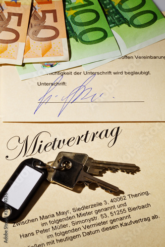 © Gina Sanders, Fototapeta premium Wohnungsschlüssel und Mietvertrag