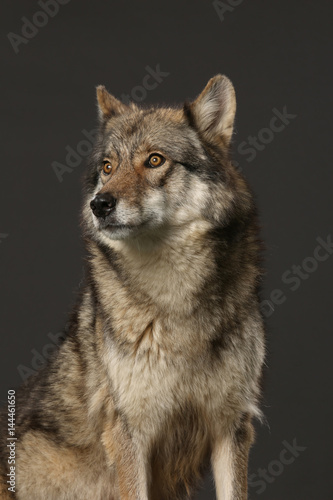 Fototapeta premium Wolf als Studioaufnahme mit schwarzem Hintergrund