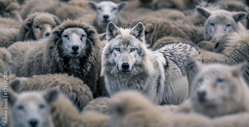 Obraz premium Wolf Among Sheep Stock Image