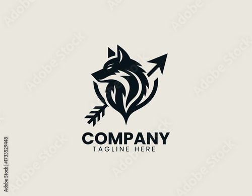 Obraz premium Wolf Arrow vector logo illustration