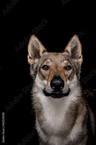 Fototapeta premium wolf dog on the black background
