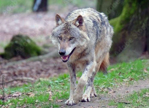 Fototapeta premium Wolf_Europaeischer Grauwolf in Aktion