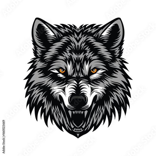 © MdSaimon, Fototapeta premium wolf face black-white illustration design