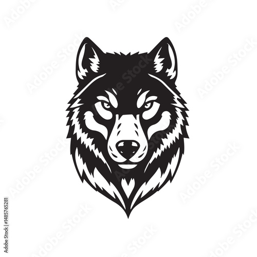 Naklejka premium Wolf Face Icon. Wolf silhouette on white background. Minimal Wolf Head...