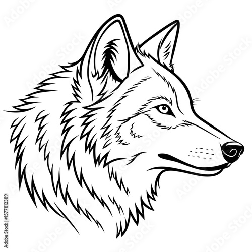 © Mamnur Rahman, Naklejka premium wolf face linear illustration sharp vector lines